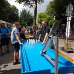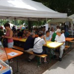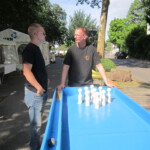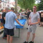 Petrus hatte dann doch noch ein Einsehen mit den Vereinen und schickte ein doch recht passables Wetter nach Heidelberg. So konnten sich auch in diesem Jahr die Besucher wieder an Würstchen, Steaks und einem reichhaltigen Kuchenbuffet bedienen sowie ihr sportliches Geschick an der aufgebauten Tischkegelbahn probieren. Leider endete die Veranstaltung gegen 17 Uhr recht schlagartig, da es die Massen doch vor den heimischen Fernseher zog, um das Eröffnungsspiel der deutschen Fußballnationalmannschaft anzuschauen.