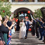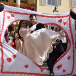 Bei schönen Herbstwetter ließen es sich die Adler zusammen mit Freunden und Verwandten des Brautpaares nicht nehmen, die beiden Jungvermählten nach der Trauung durch ein Spalier von Luftballons, Konfetti, Seifenblasen und natürlich Kegeln zu geleiten.